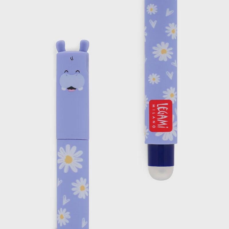 Legami Hippo Erasable Gel Pen with Blue Ink.